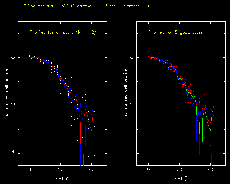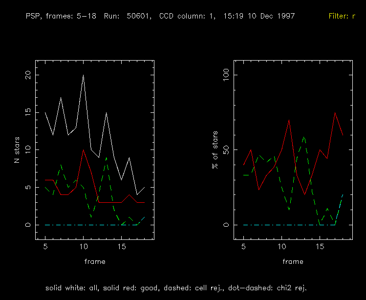 As it can happen that some frames do not have enough bright stars for the PSF determination (especially in u band), several frames are combined together. The number of frames to be considered is a free parameter specified, as well as all other free input parameters which control the PSF determination, in file psParam.par.