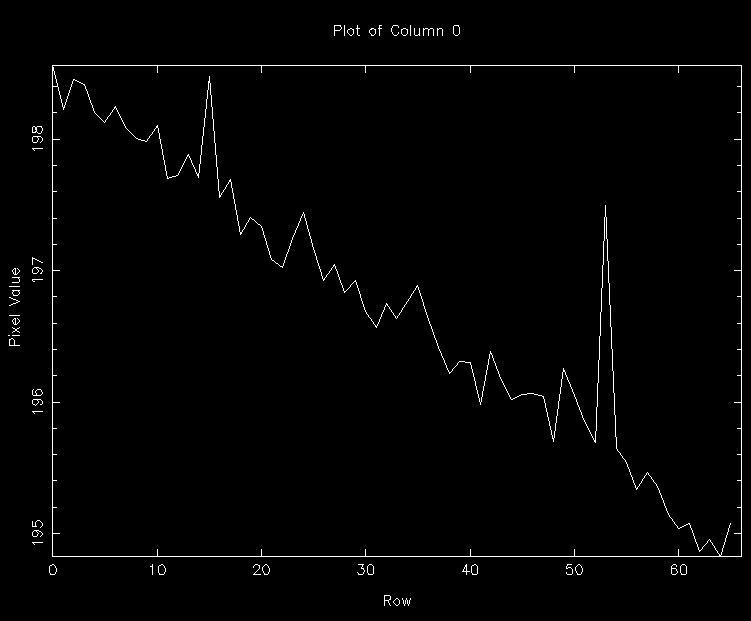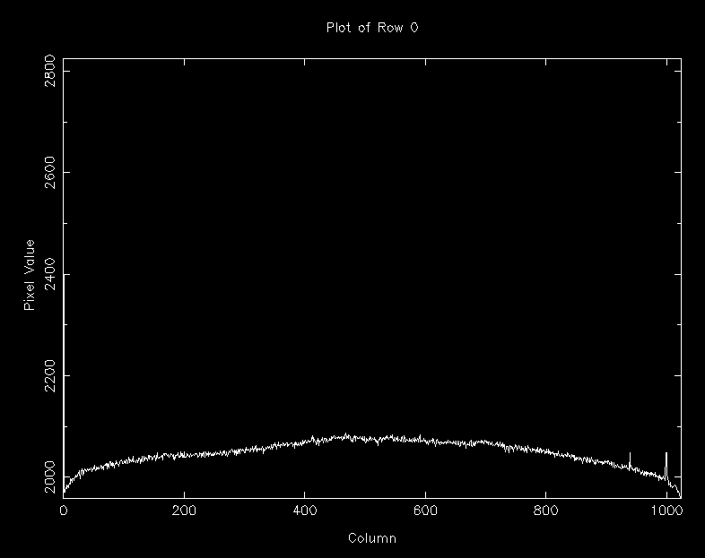 When the drift scanning technique is employed, pixels along the scanning direction (rows) are integrated together, and all three above quantities depend only on the chip columns (at a given time). The bias, flat-field and sky are determined on a frame by frame basis (corresponding to intervals of about 37 sec; note that the these values are mean filtered over 55 sec exposure time and over a 14 arcmin long strip on the sky). Another simplification is that the overall bias shape as a function of column is rather stable and it is sufficient to continuosly monitor only its overall shift called the bias drift. For this purpose each chip has an overclock region, a 40 columns wide strip not exposed to the incoming light.