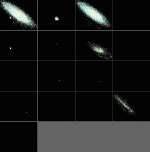 The v5_2_14 deblend of an r' ~ 11.3 galaxy with an r' ~ 13 (slightly saturated) star. Note that the flux is allocated to different children in wildly inconsistent ways.